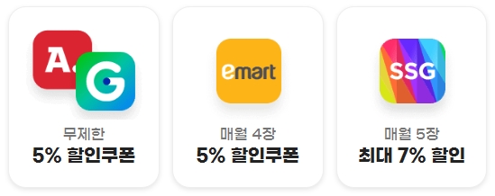 매월 5% 할인쿠폰 4장을 지급하고, 5만원 이상 구매시 최대 3천원까지 가능하며, 쿠폰별 사용기간이 상이합니다. 이달의 플러스 혜택도 제공하는데요, 상품 및 서비스 혜택은 매월 변경됩니다.