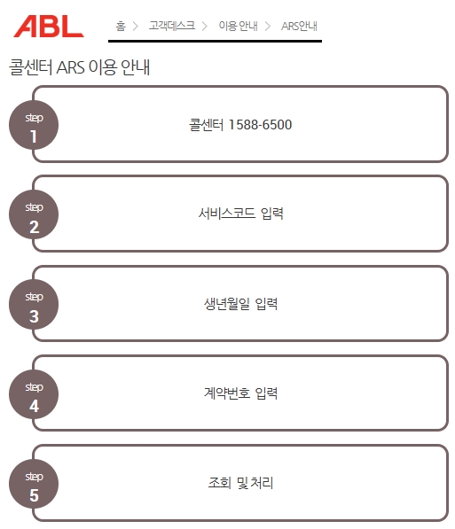 에이비엘생명 또는 ABL생명 고객센터 전화번호와 ARS 이용에 대한 안내를 드리겠습니다. 해당 보험사를 이용하시는 분들이 참고하면 좋을 것 같은데요, 홈페이지에 접속하여 고객데스크 > 이용안내 > ARS안내 메뉴순으로 들어가시면 상세안내를 확인할 수 있습니다.